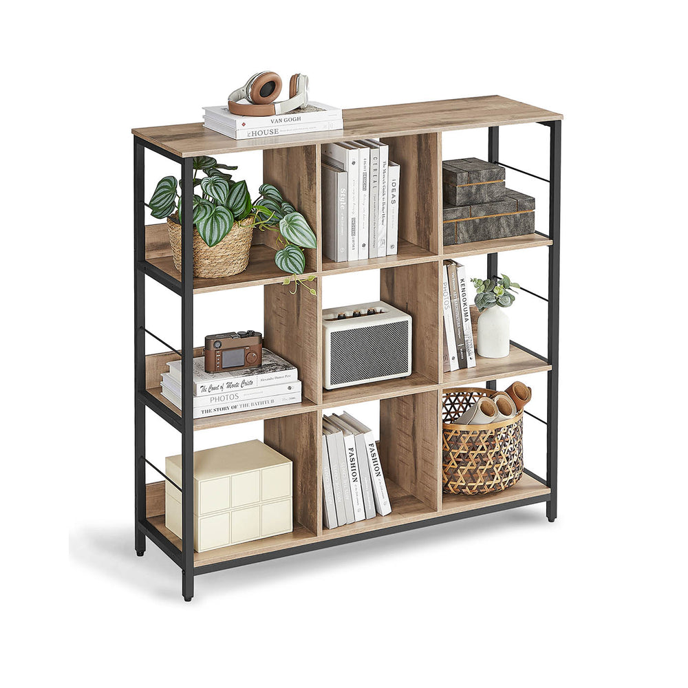 Étagère avec 9 cases marron rustique noir industriel | VASAGLE