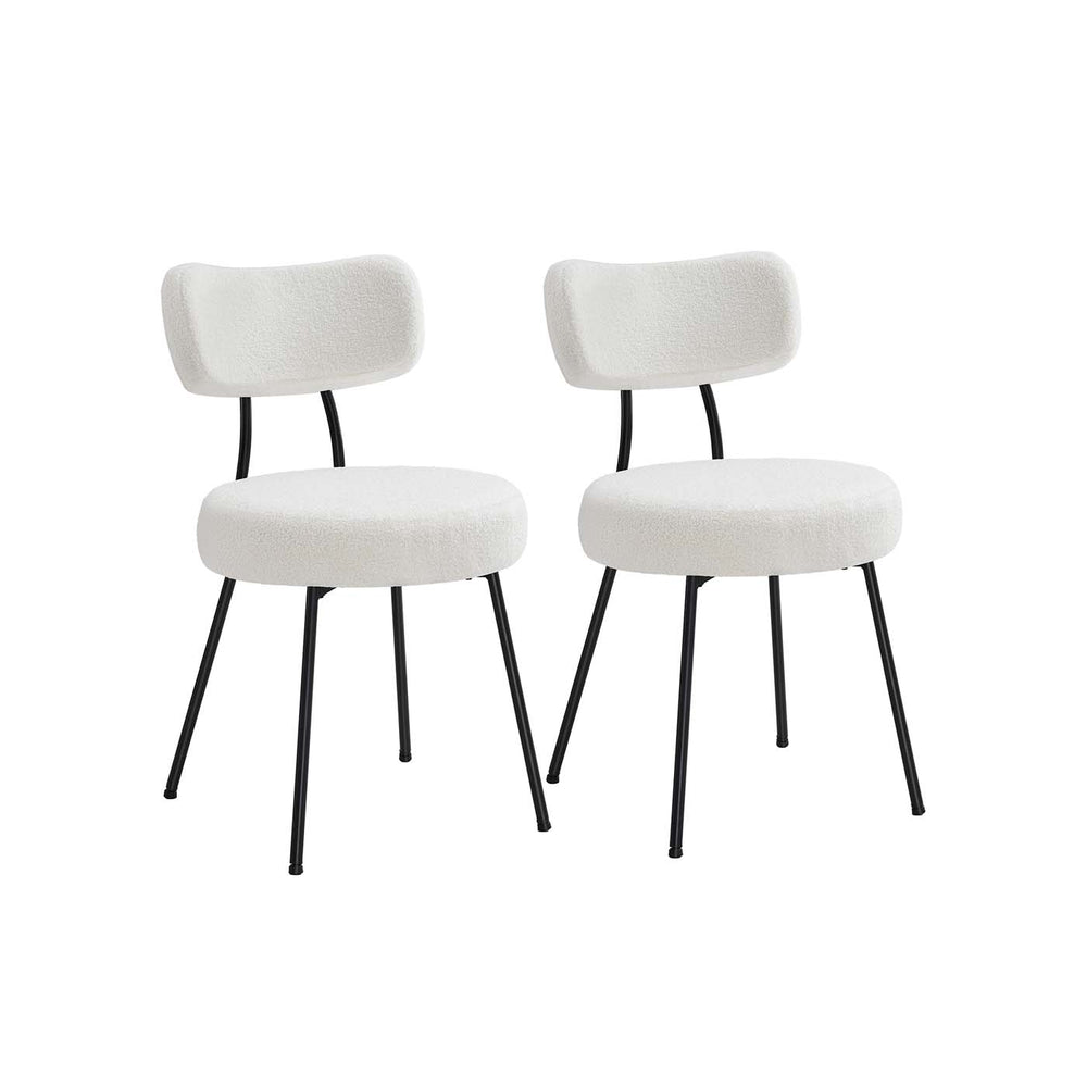 Chaises salle à manger lot de 2 tissu peluche cader en acier blanc crème