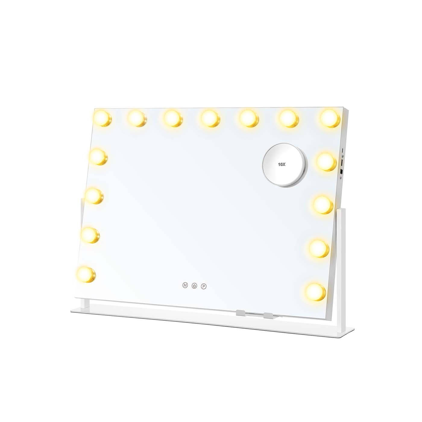 Miroir coiffeuse 15 ampoules LED 58 x 43 cm miroir grossissant détachable 10X blanc mat