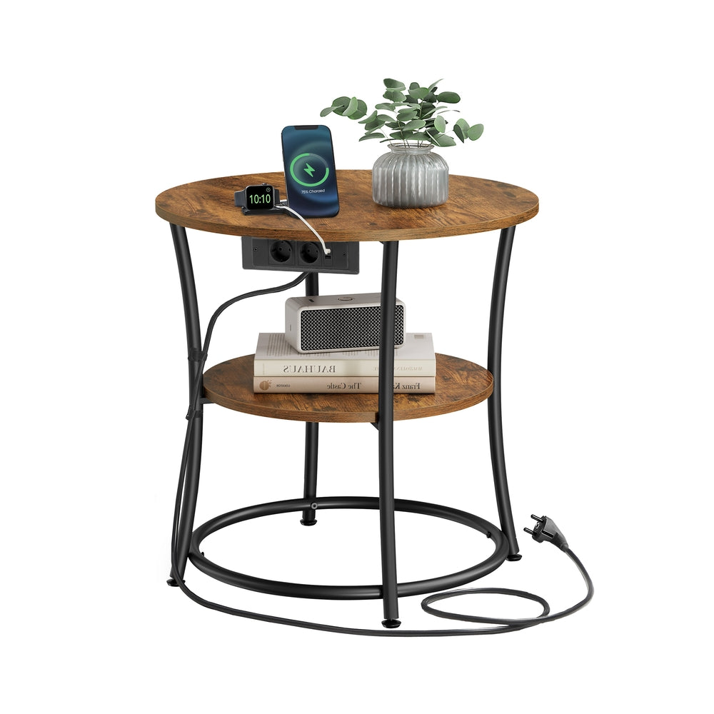 Table d’appoint ronde avec étagère et prise intégrée
