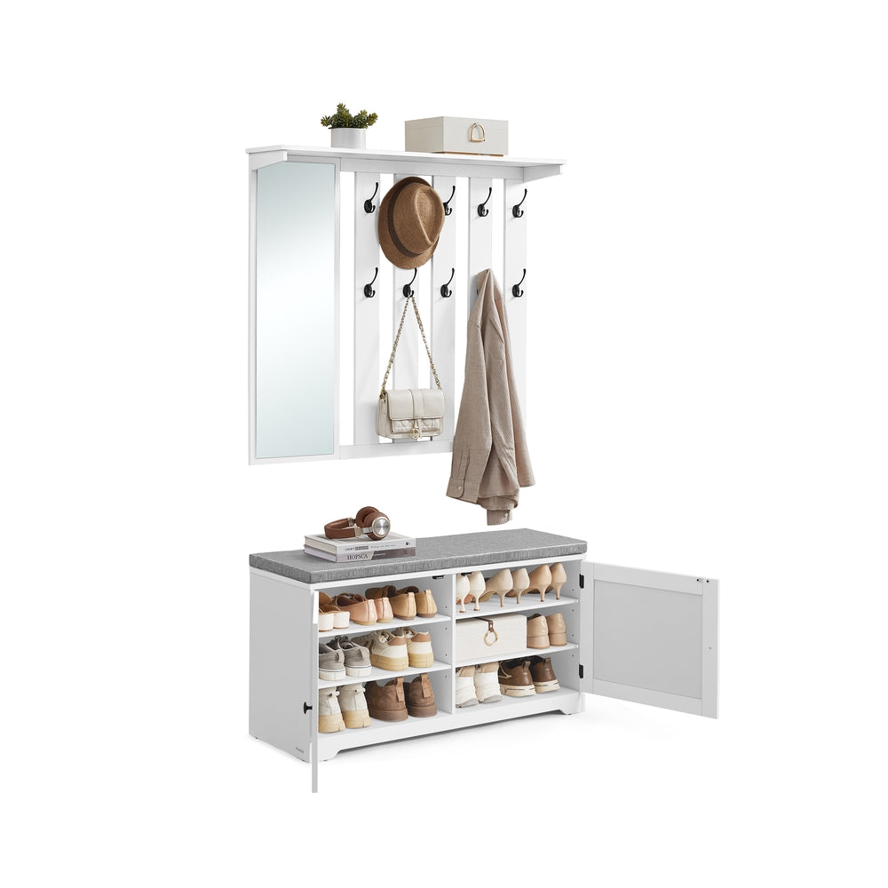 Ensemble porte-manteau avec banc à chaussures miroir blanc nuage