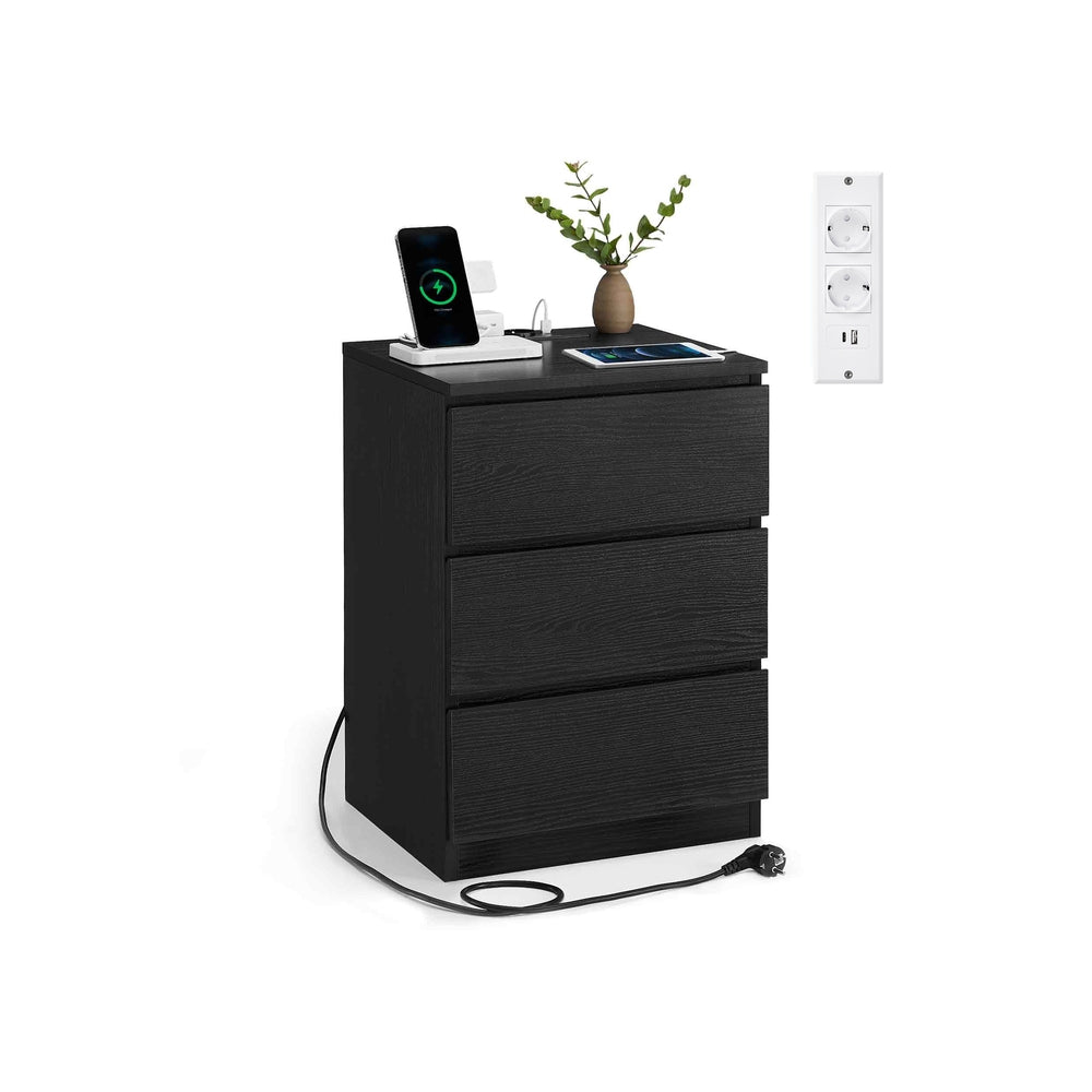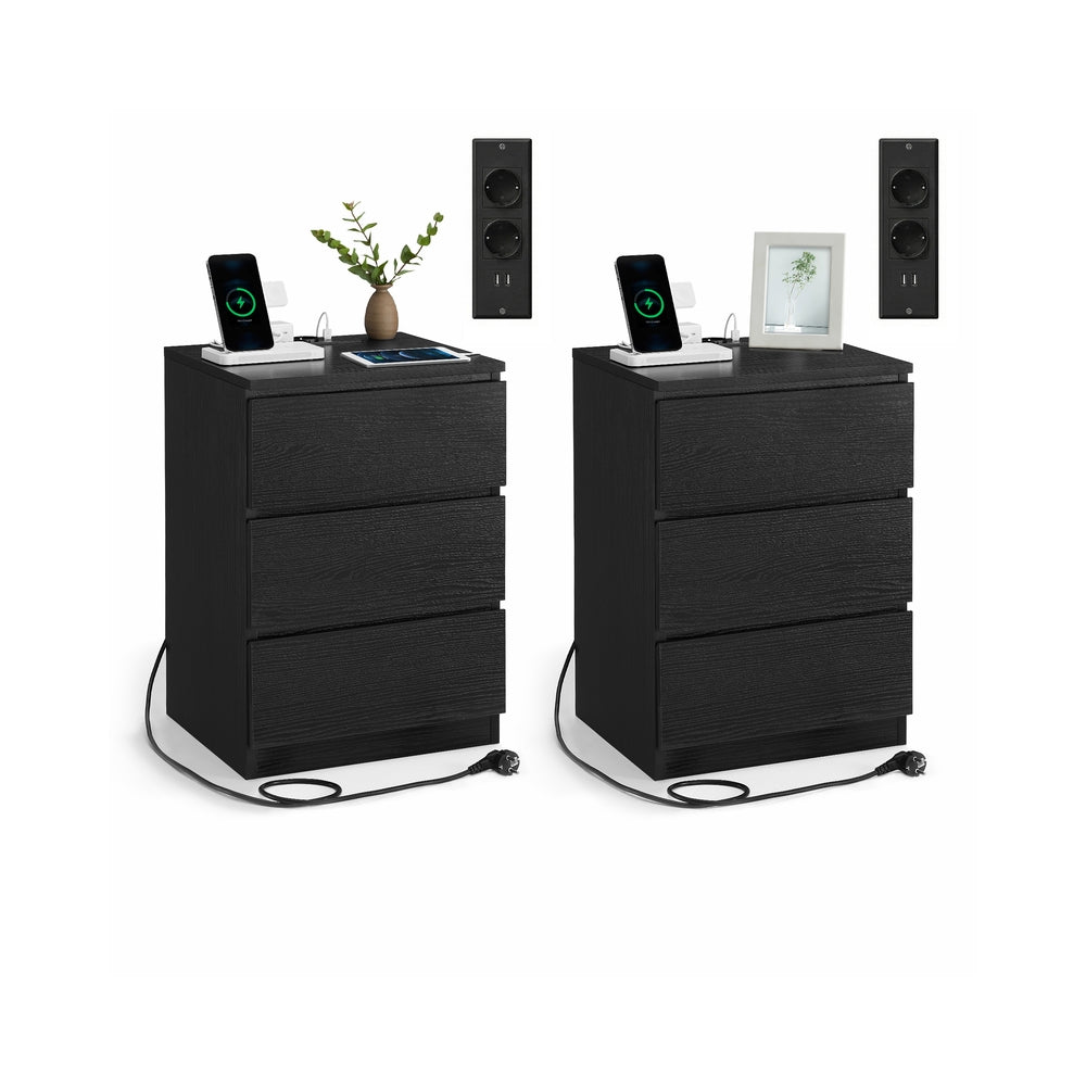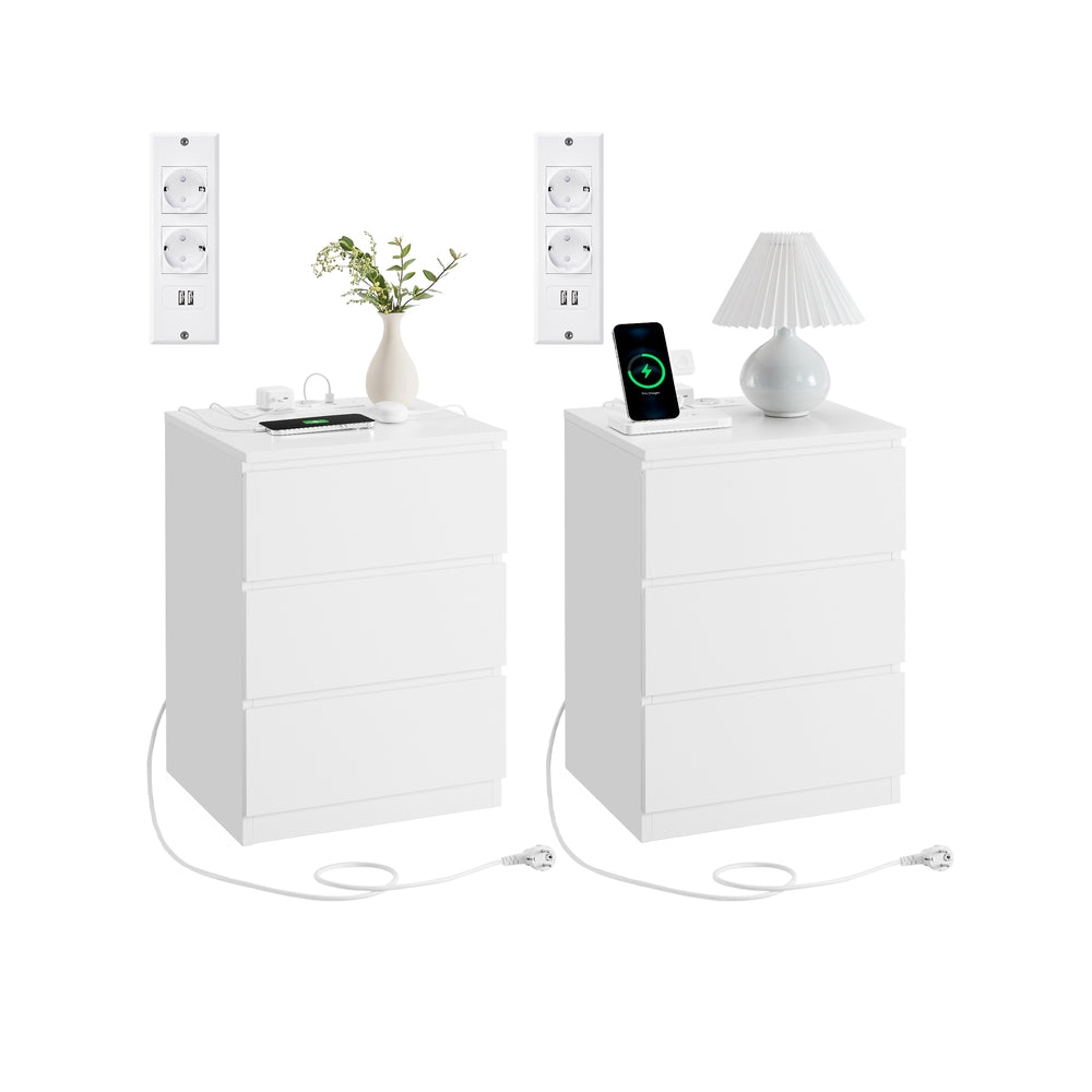 Kailyn Collection - table de chevet avec multiprise lot de 2 3 tiroirs moderne blanc nuage