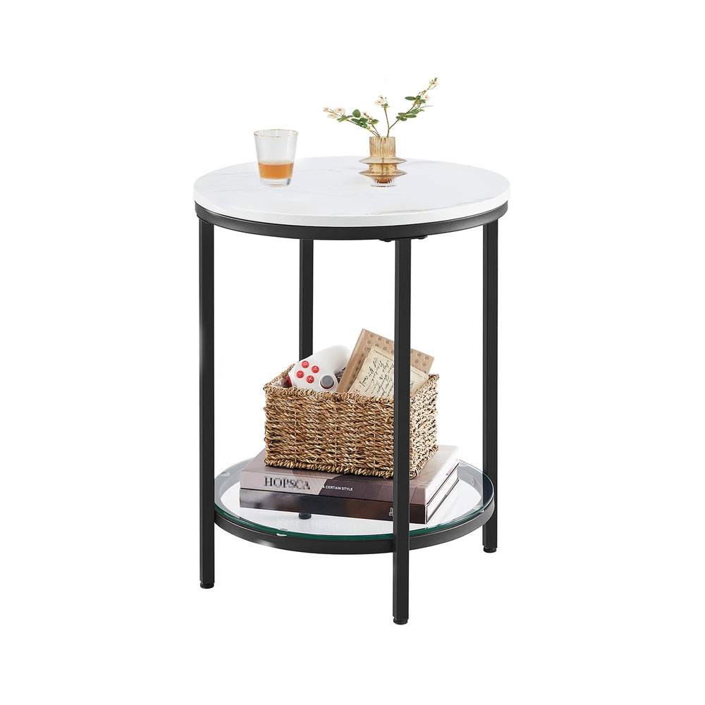 VASAGLE Table d’appoint ronde à 2 niveaux blanc marbré et noir