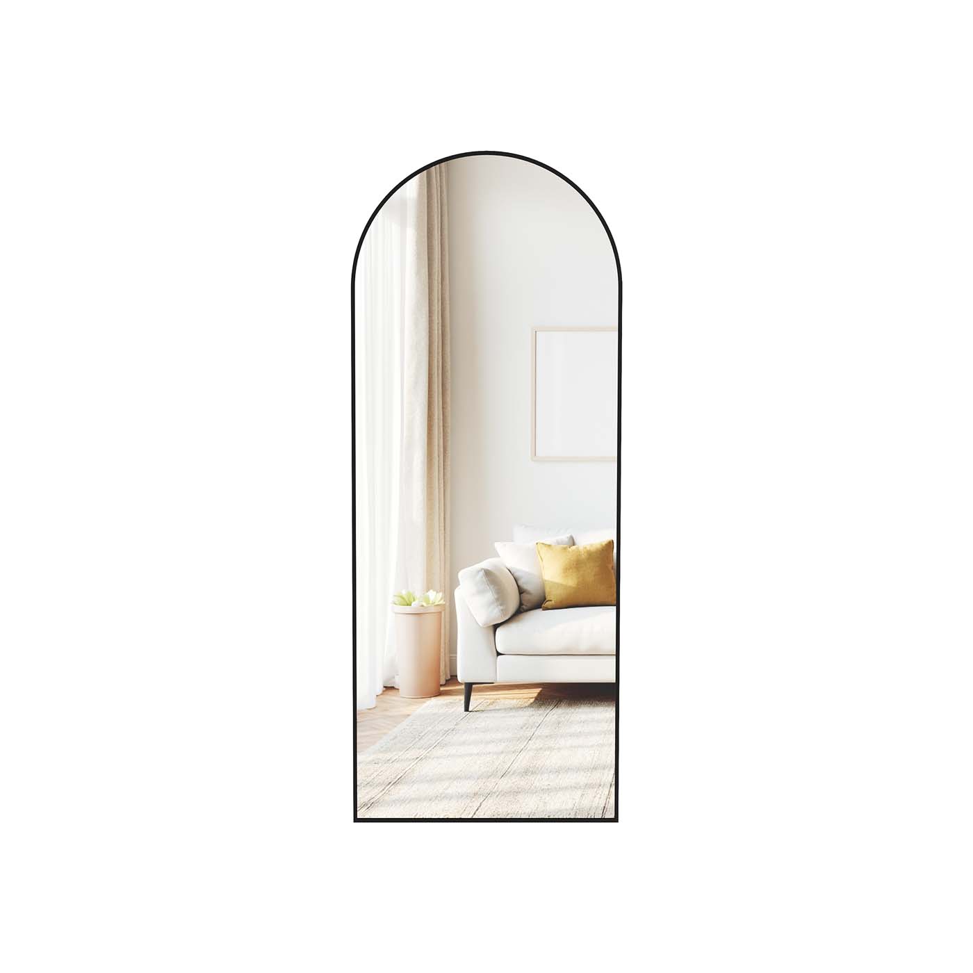 Miroir sur pied en forme d'arc 150 x 40 cm cadre en alliage d'aluminium verre trempé noir d'encre
