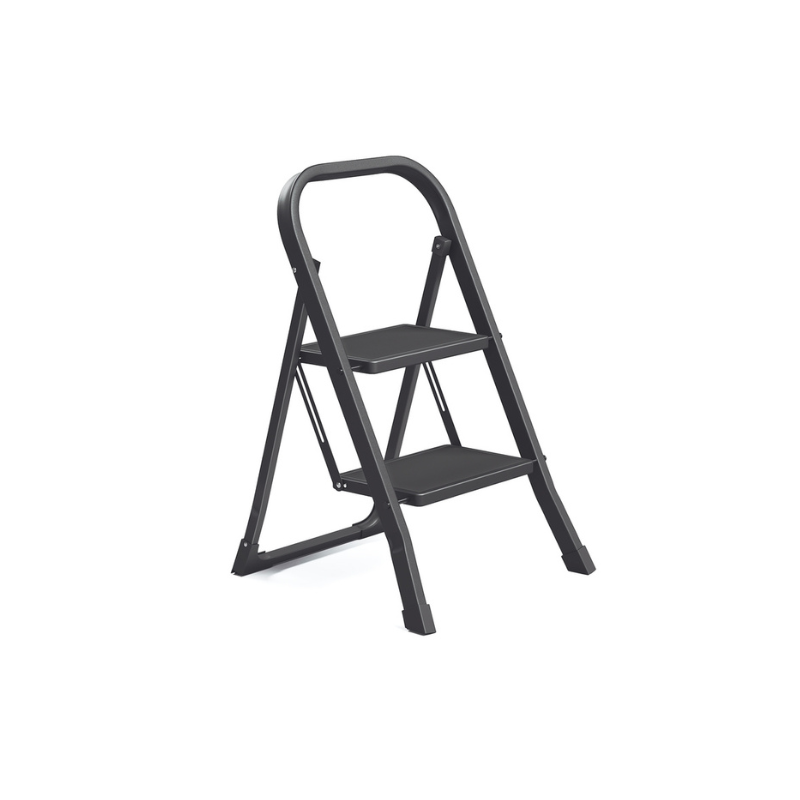 Escabeau pliable 2 marches avec échelle intégrée et serrure de sécurité
