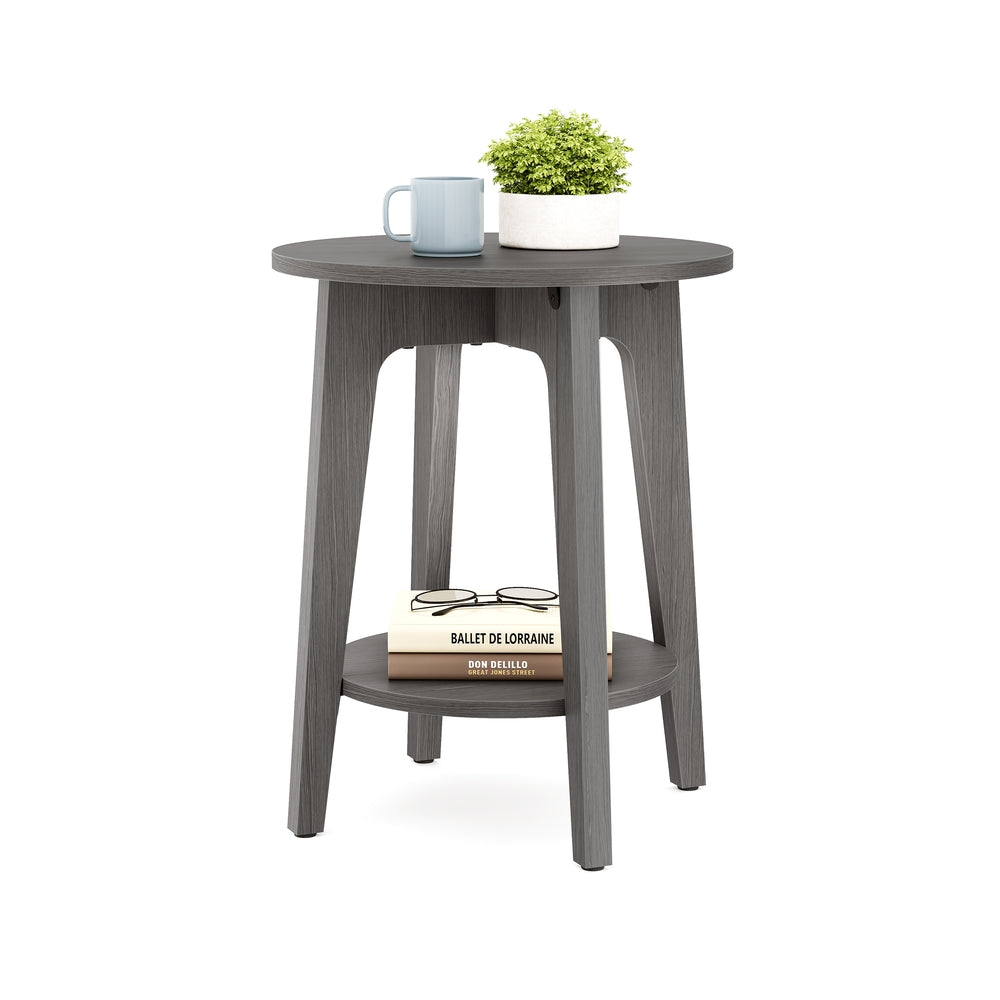 Table d’appoint ronde avec étagère pour petits espaces marron miel