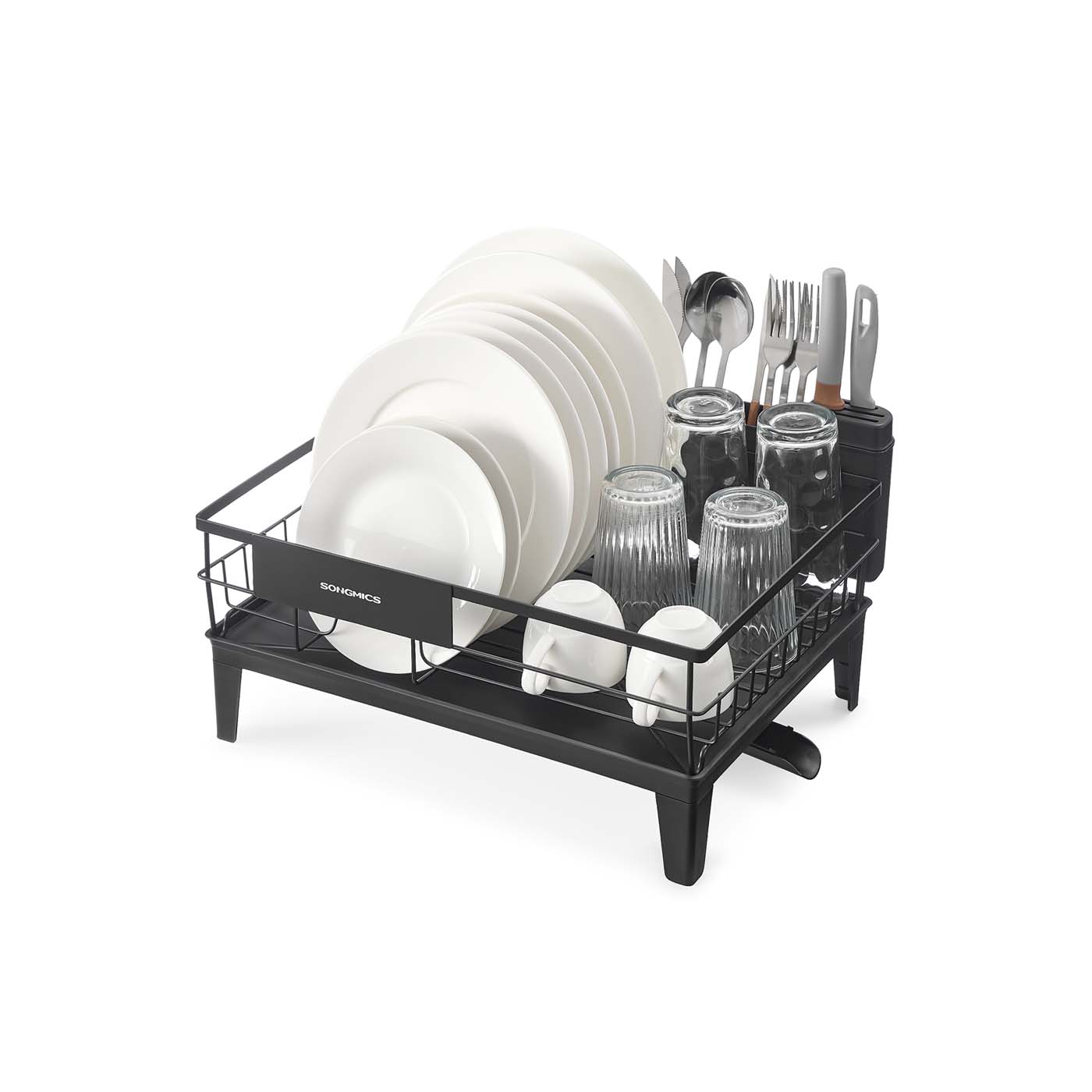 Égouttoir à vaisselle bec rotatif à 360° et extensible 31 x 42 x 18,5 cm noir d'encre