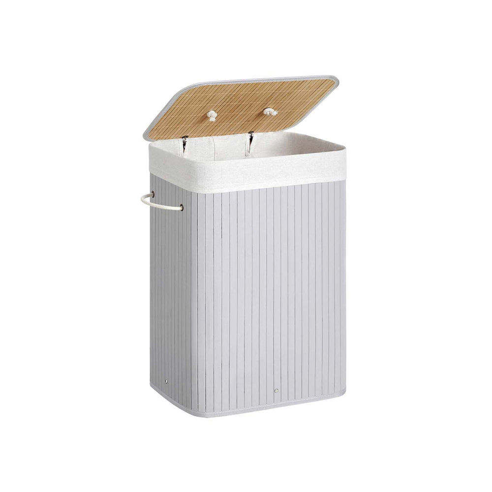 Panier à linge avec couvercle 72L en bambou pliable avec sac amovible lavable poignées gris