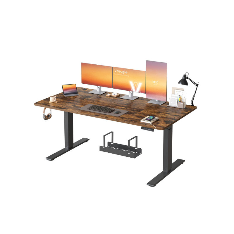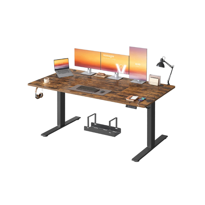VASAGLE Bureau Électrique Réglable en Hauteur, avec Port USB-C, Support pour Multiprise