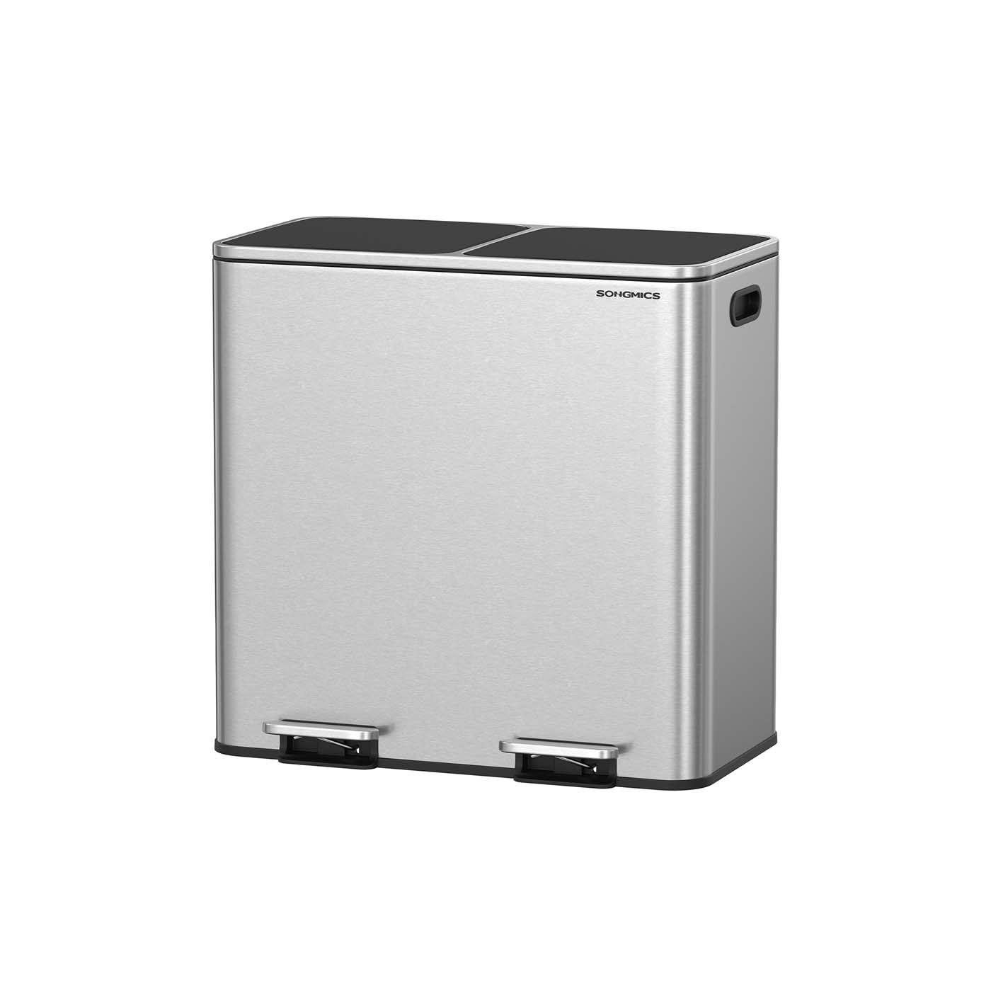 SONGMICS Poubelle à deux compartiments avec seaux intérieurs et pédales robustes