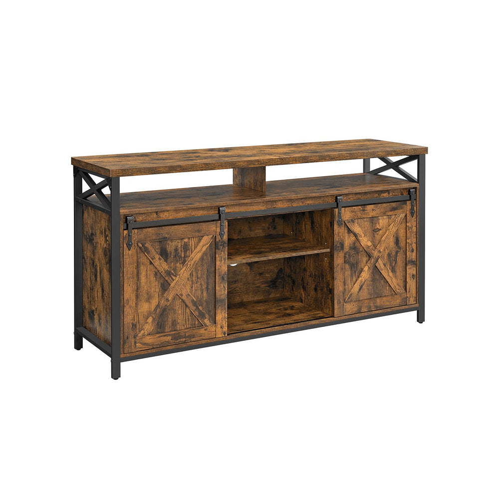 Meuble tv pour téléviseur jusqu’à 65 pouces cadre en métal, marron rustique et noir