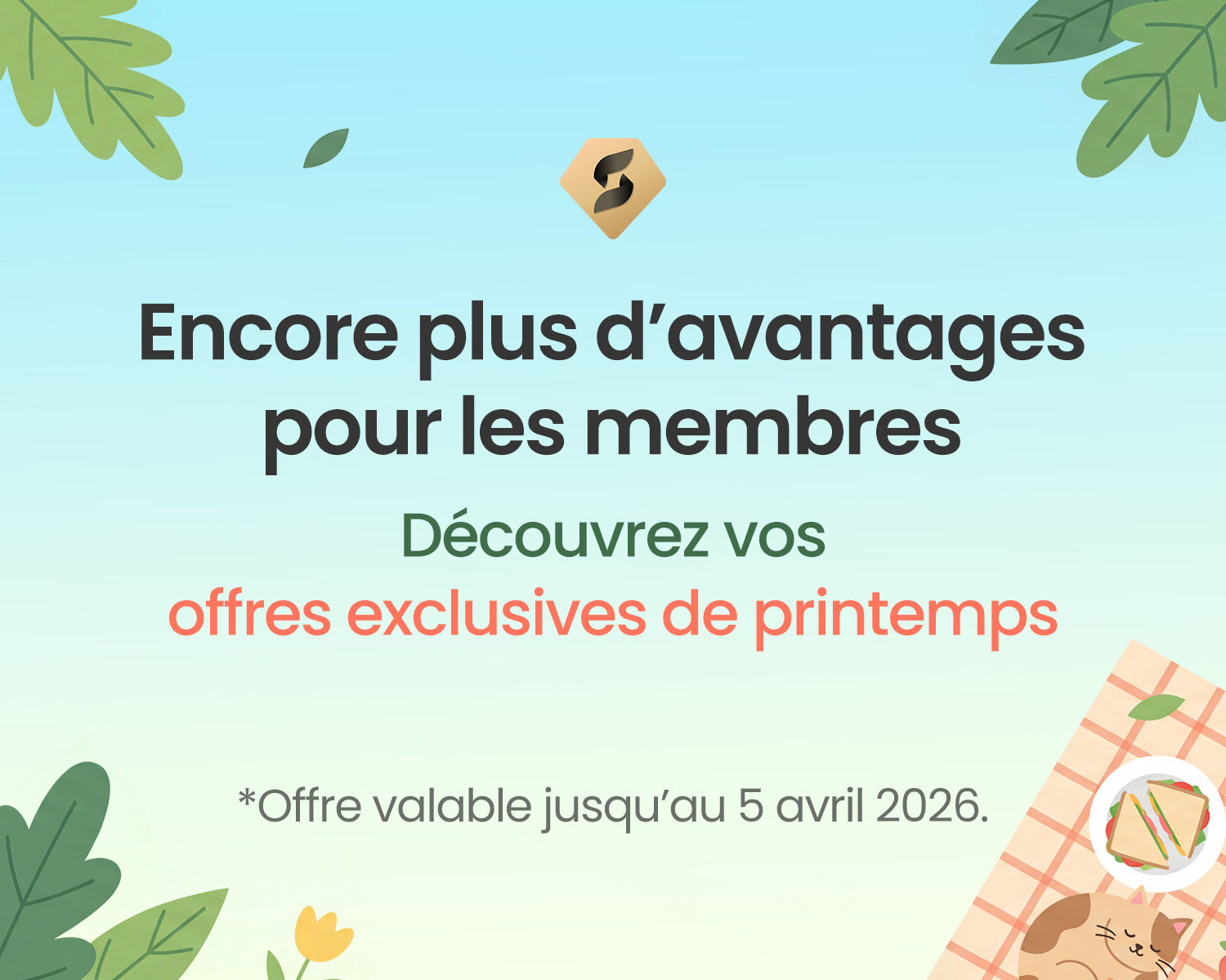 Offre réservée aux membres (hors dropshippers), valable une seule fois par personne pendant la période de l’opération.