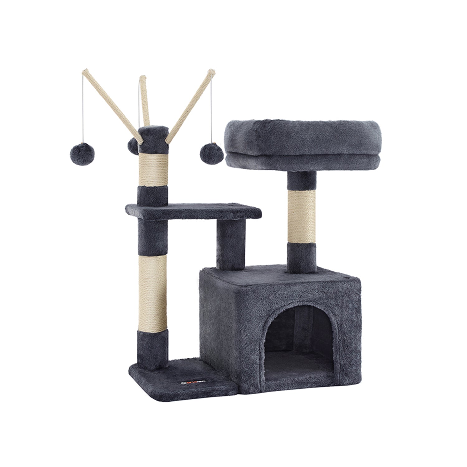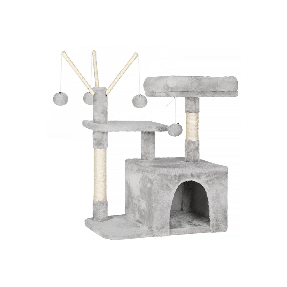 Arbre à chat griffoir 72cm pompon gris clair doux | FEANDREA