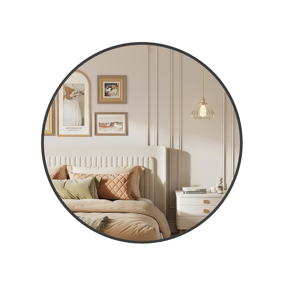 Miroir mural rond diamètre 61 cm cadre en métal noir