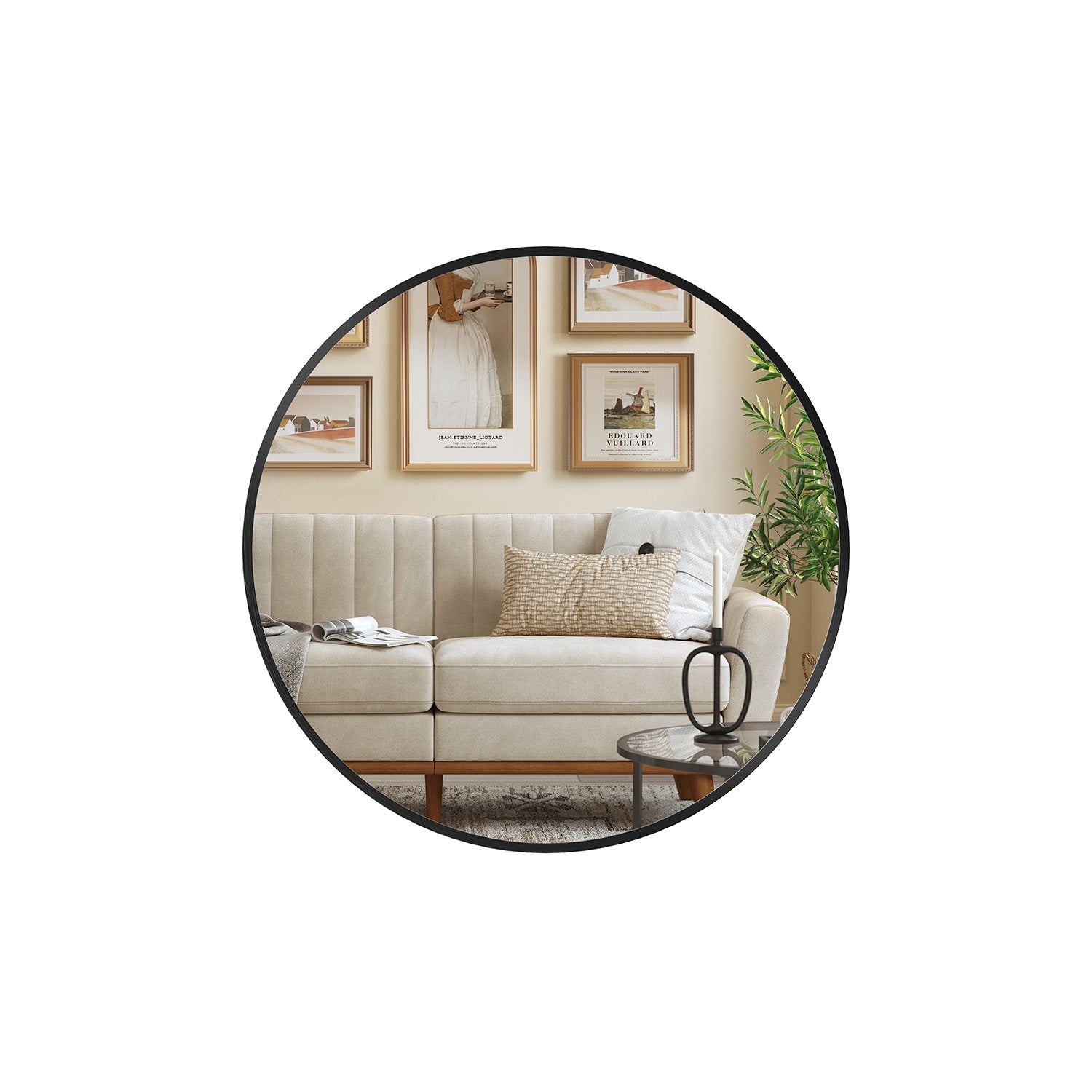 SONGMICS Miroir mural rond diamètre 61 cm cadre en métal noir