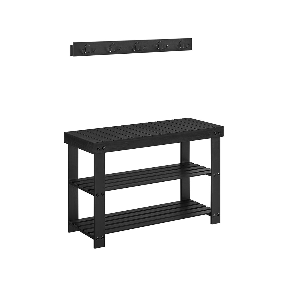 Porte-manteau et banc à chaussures 3 niveaux beige naturel