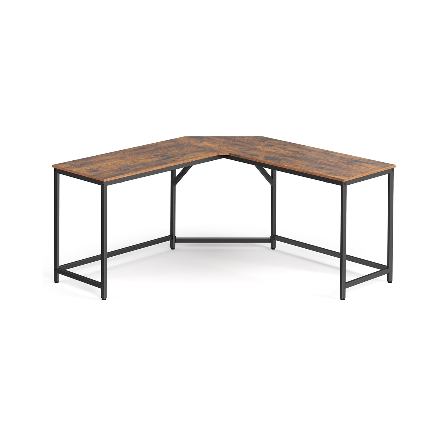 Bureau d'ordinateur en forme de L 129 x 129 x 76 cm marron rustique et noir d’encre