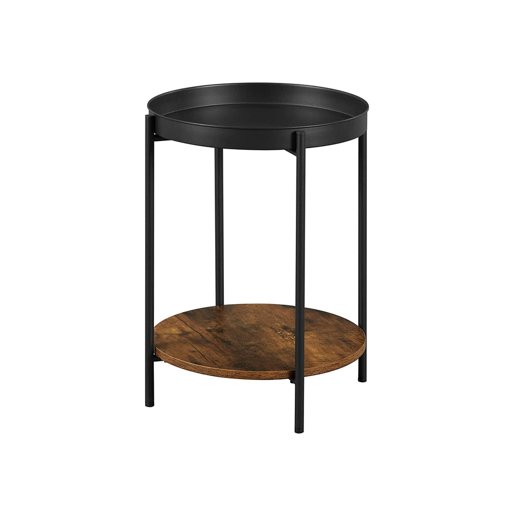 Bout de canapé rond 2 niveaux métal bois rustique | VASAGLE