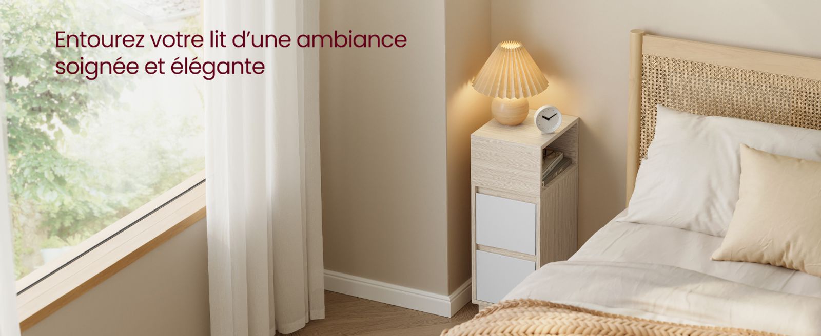 Table de chevet étroite avec 2 tiroirs et compartiment