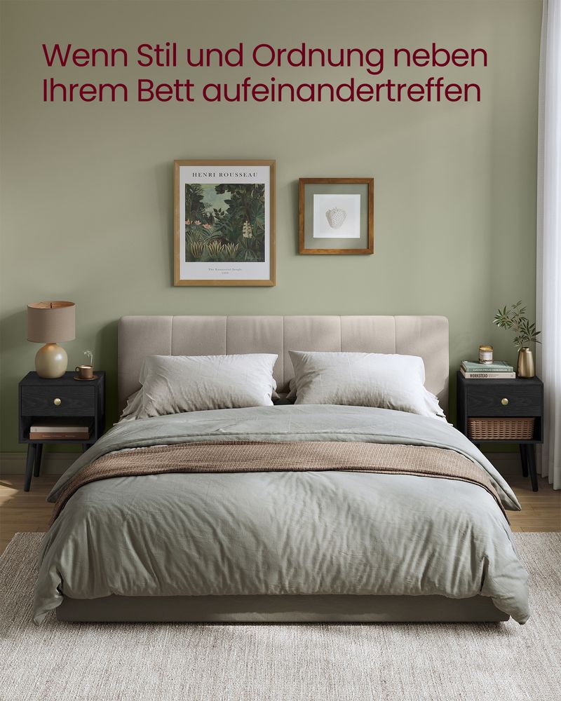 • 【NOMBREUX RANGEMENT】Conçue pour répondre à vos besoins de rangement, chaque table de nuit comporte un grand plateau pour la lampe ou vos objets déco, un tiroir fermé pour vos effets personnels et une étagère pour garder vos livres à portée de main